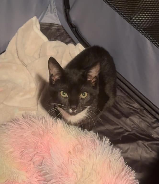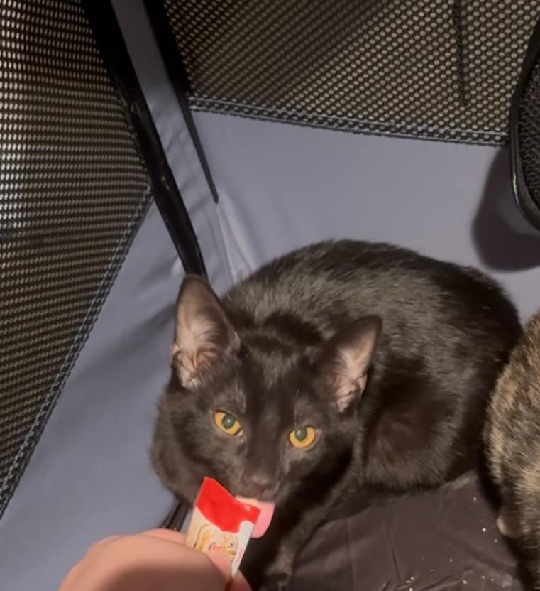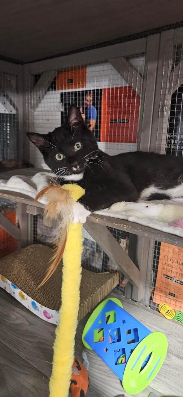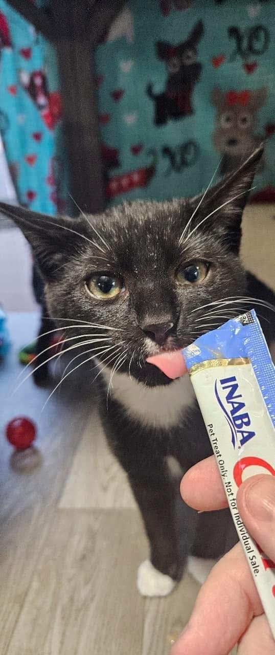 🐾 Crabcake (tuxedo) is the outgoing one—playful, social, and always ready for fun.